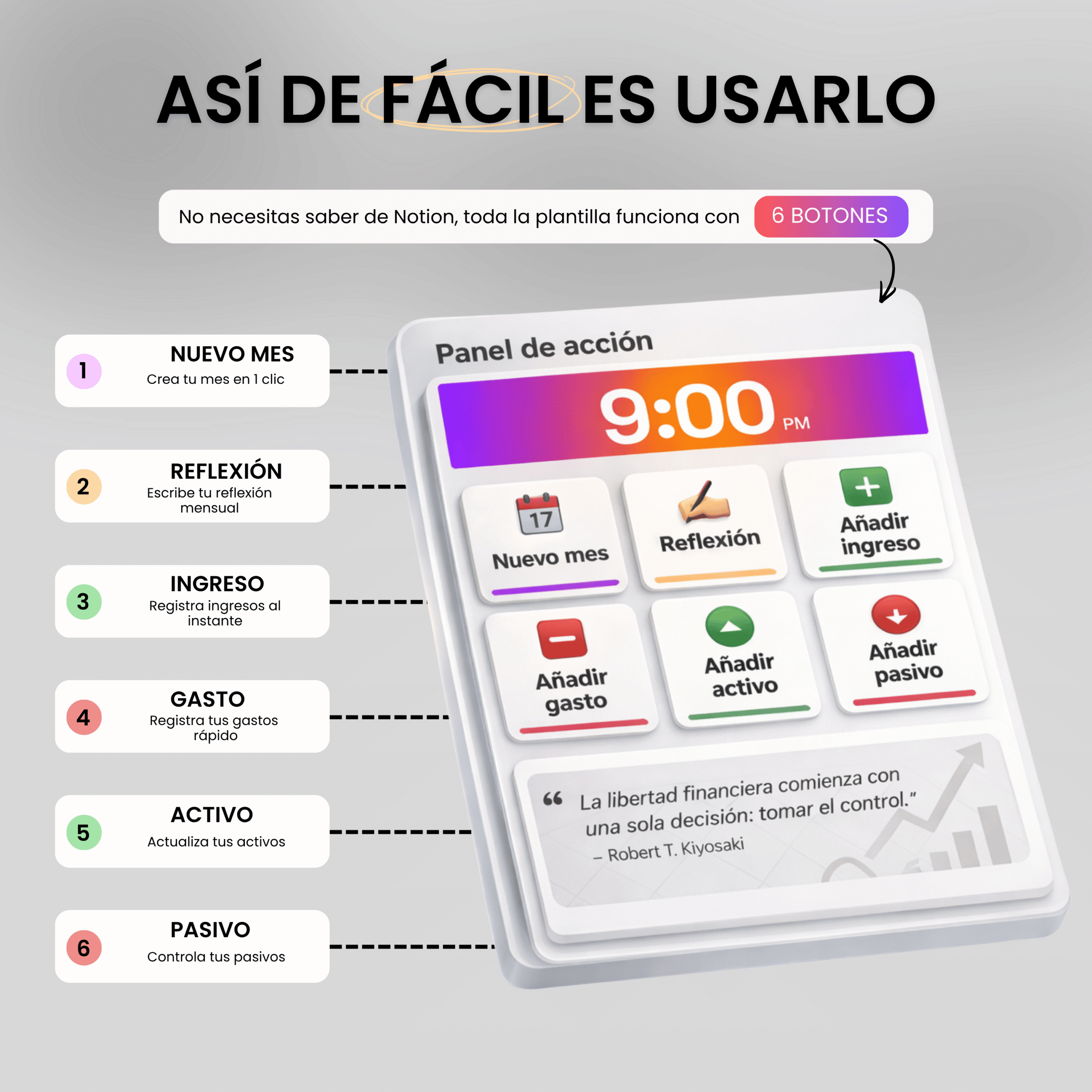 Un sistema que te obliga a ver exactamente qué pasa con tu dinero, tomar decisiones claras y dejar de vivir en desorden financiero.